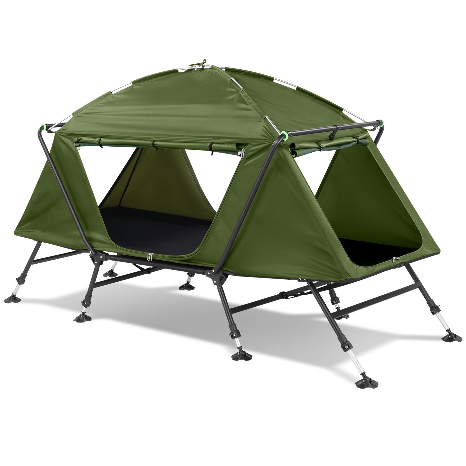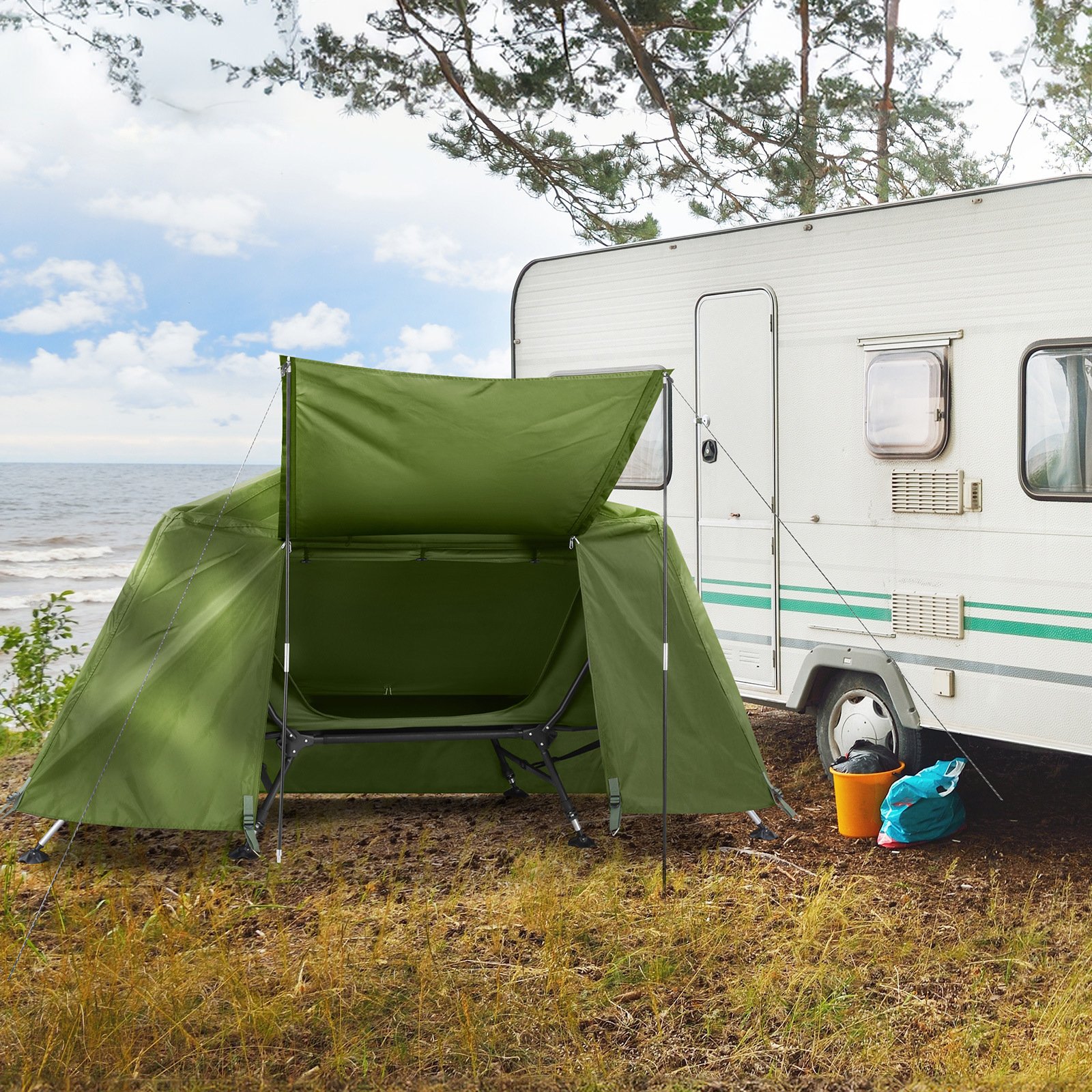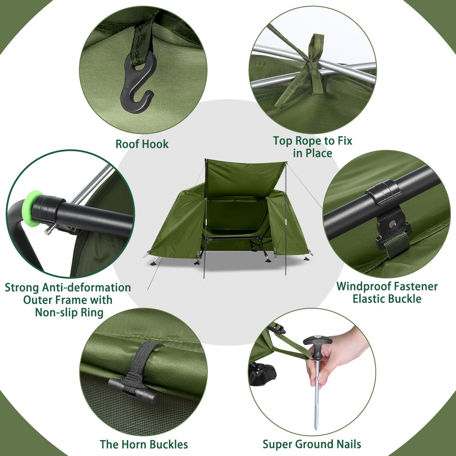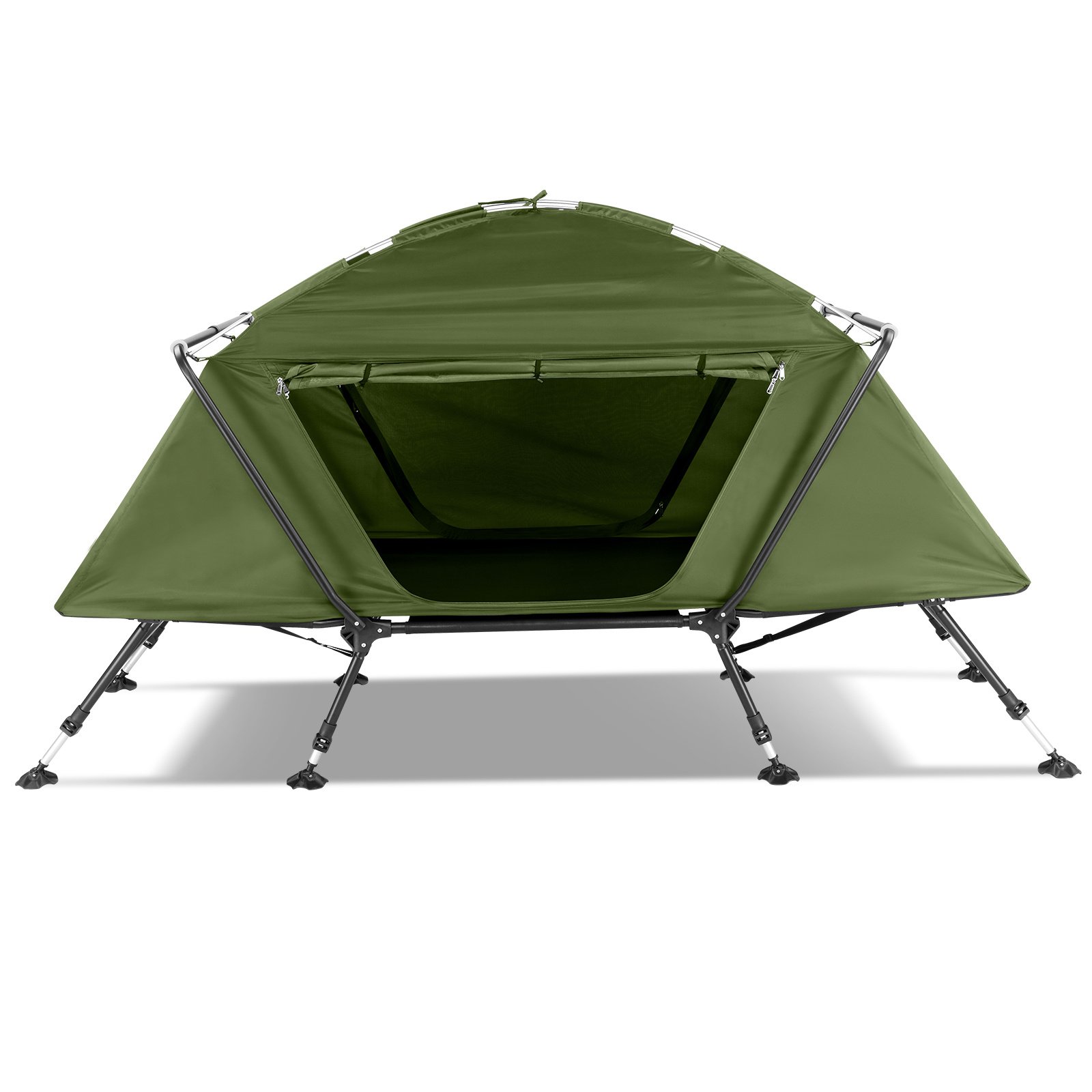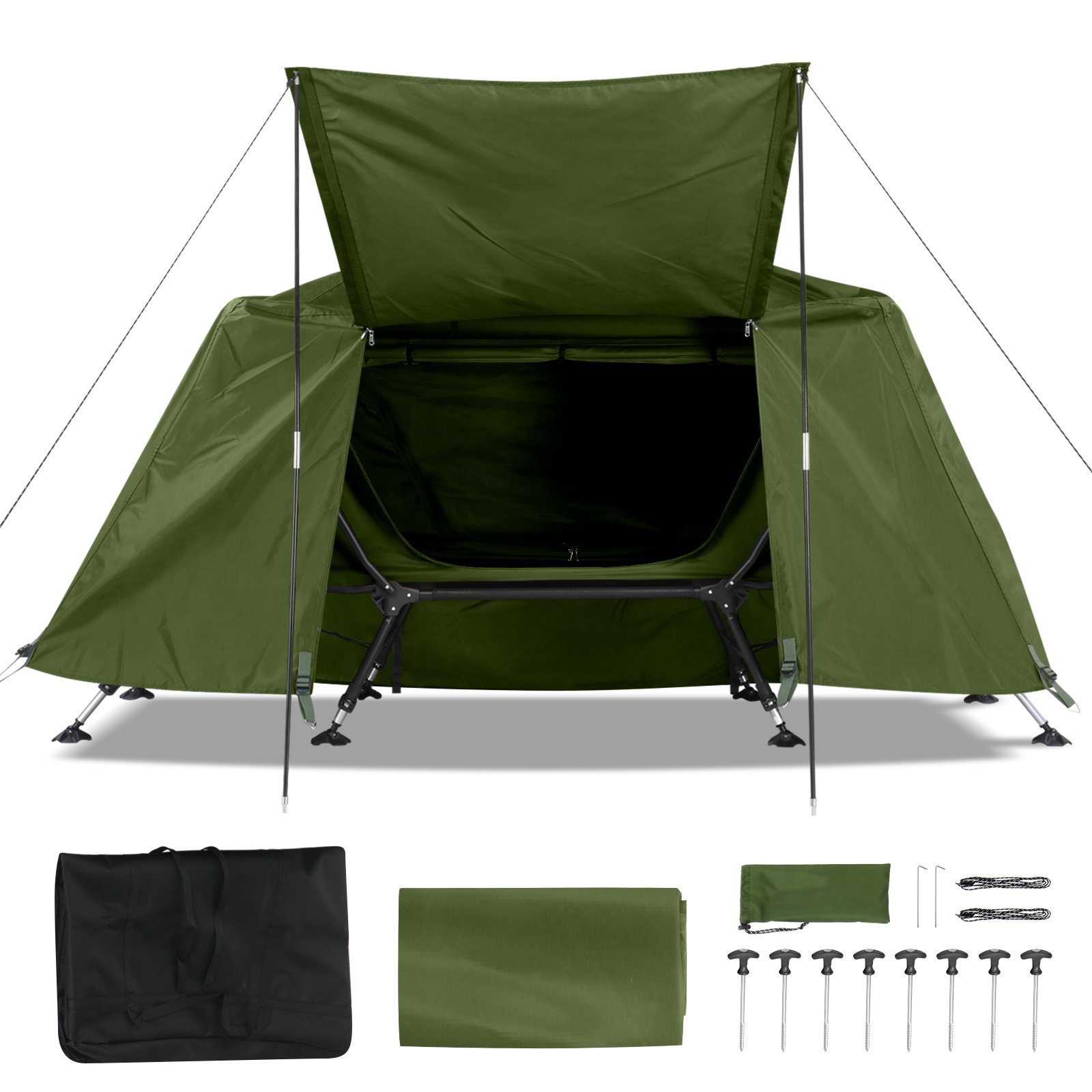 Home > 84.6*34.5*49.2in military green camping tent with tent storage bag and adjustable leg brackets with camp bed