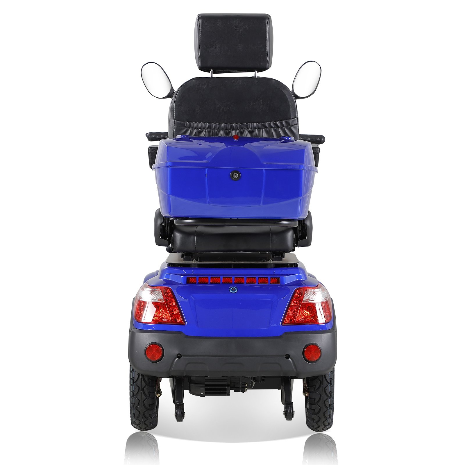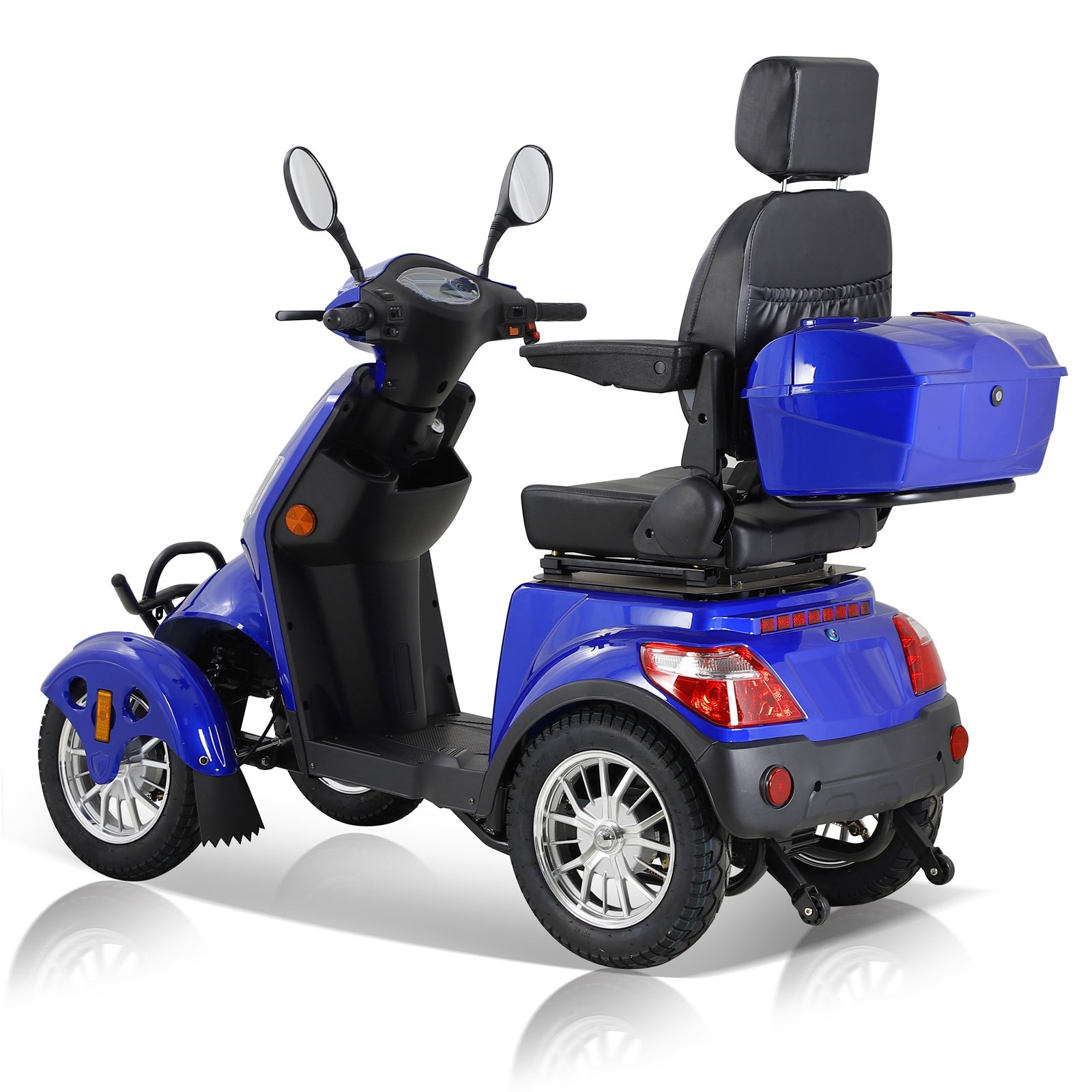 POWERFUL MOBILITY SCOOTER-Powered by a powerful yet quiet 800 Watt transaxle brushless electric motor & a 60V 20Ah long range extended battery, this 4 wheel mobility scooter can travel farther & faster than other scooters on the market. The front & rear electronic braking system ensure driving stability and steerability even when you need to stop suddenly. This high-performance scooter can hold up to 500 lbs.