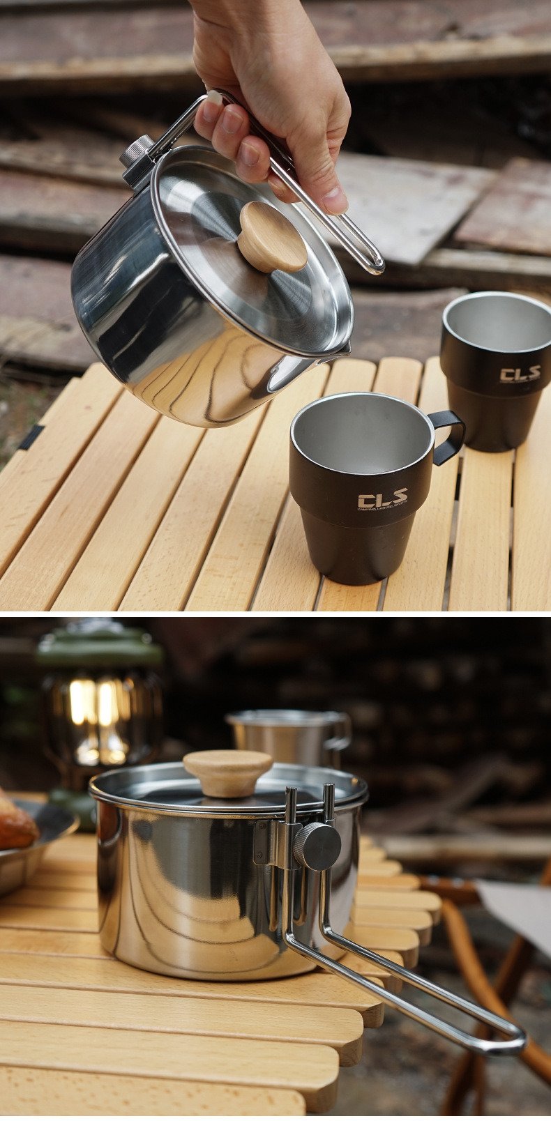 Home > Outdoor multifunctional 304 stainless steel boiling kettle mountaineering portable coffee pot foldable fishing camping pot teapot