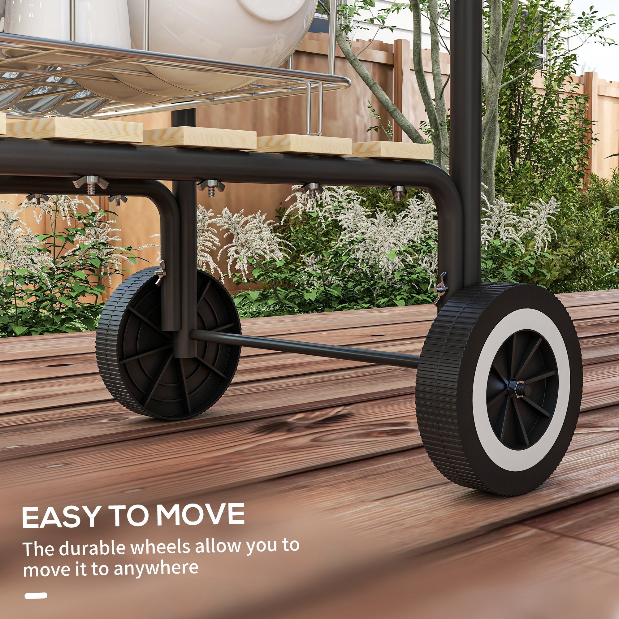 Outsunny 17" Portable Charcoal Grill with Wheels, 2 Side Tables and Bottom Shelf, BBQ with Adjustable Vents on Lid for Picnic, Camping, Backyard, Cook