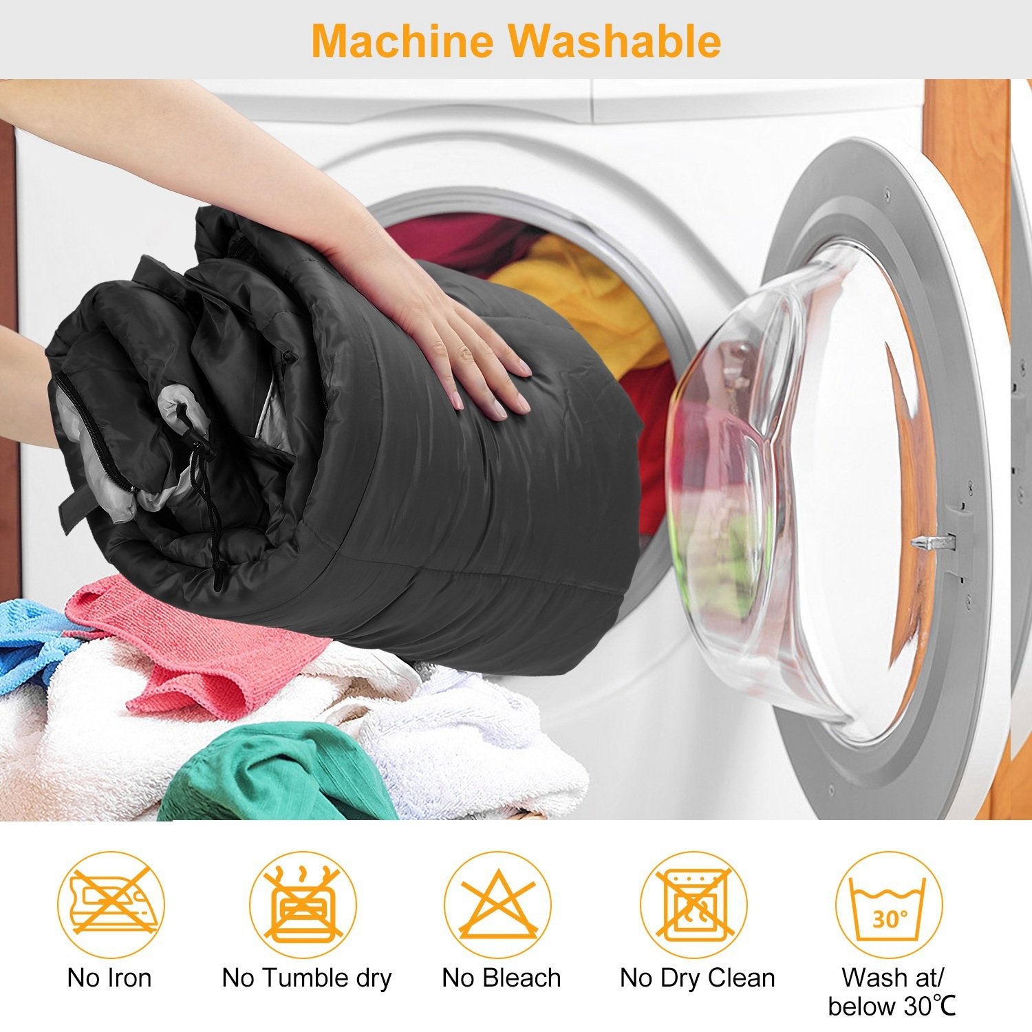 **EASY TO CARRY AND CLEAN*:Comes with a travel-friendly carry bag,which makes it quite convenient to store and carry the sleeping bag along. Moreover,they are also extremely easy to clean as they are safe for machine wash too.