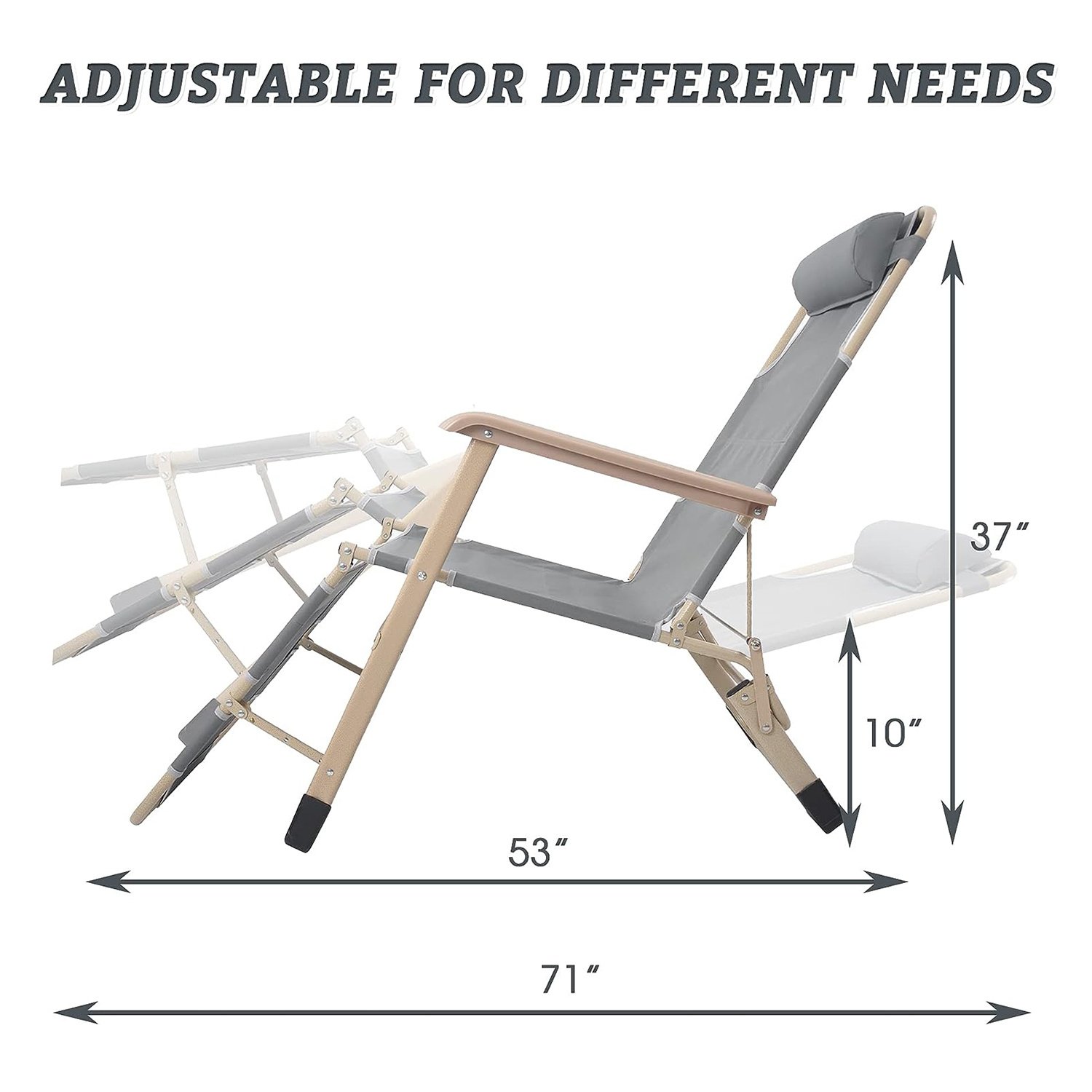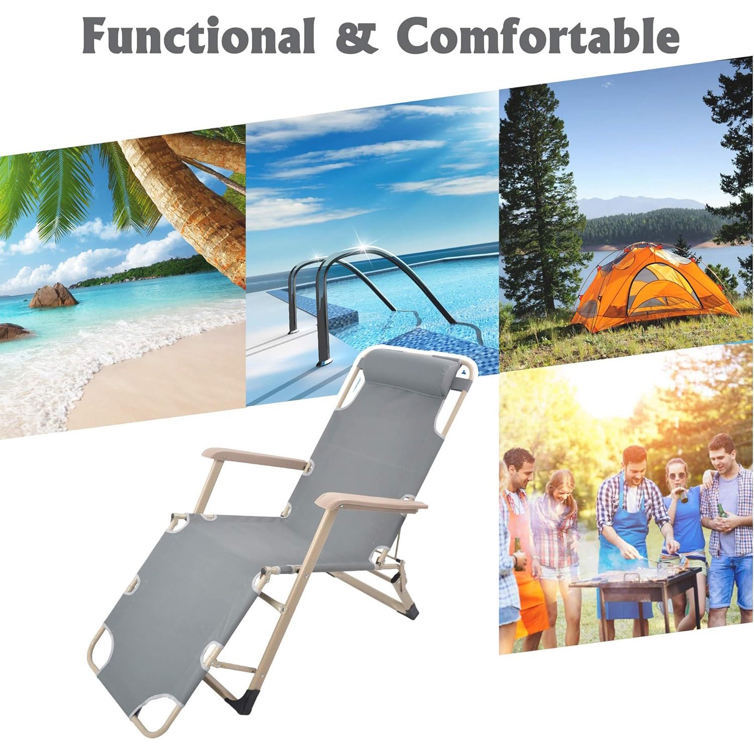 Portable: With its portable feature, the foldable recliner is suitable for various situations, such as beach, poolside, camping, picnic, and so on.
