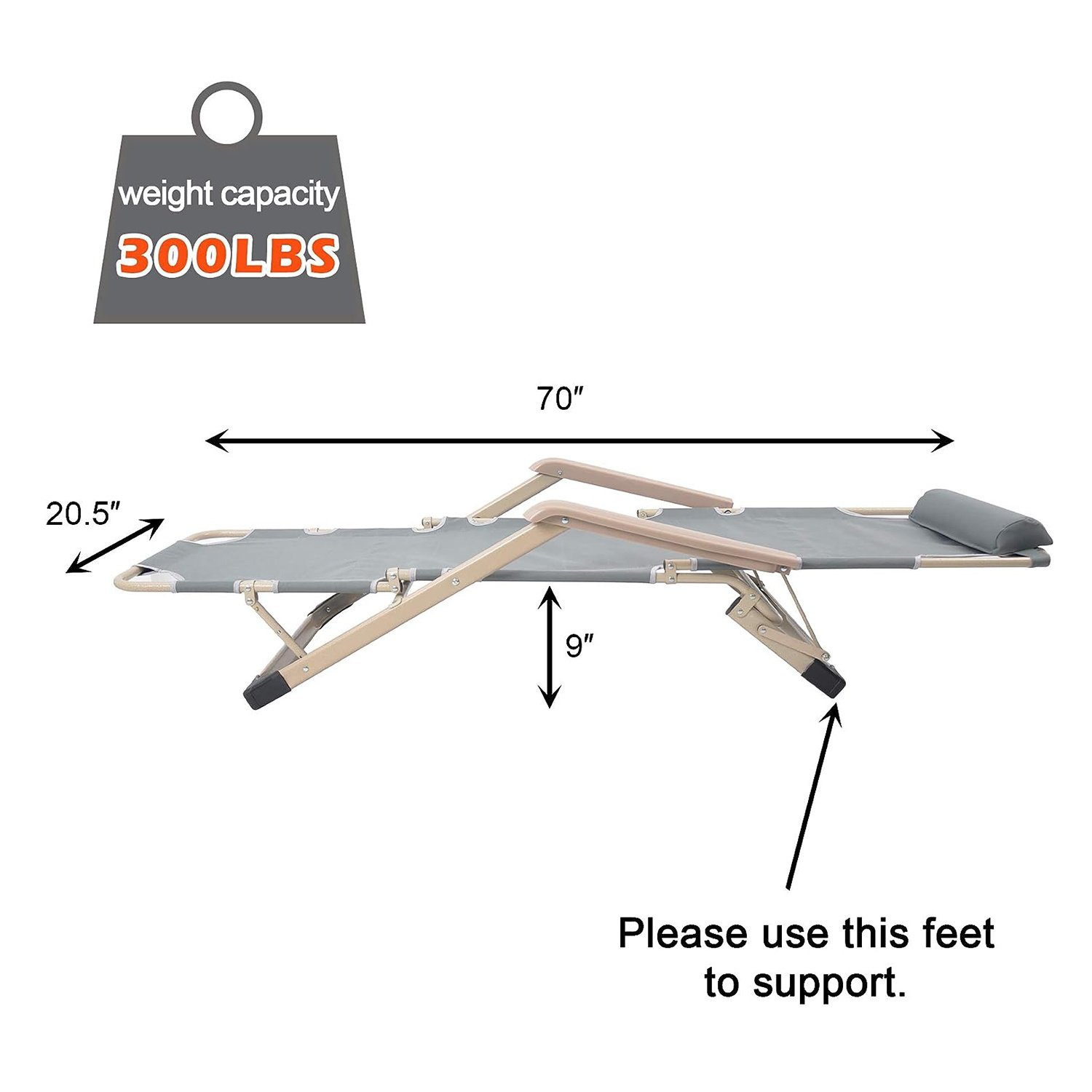 Sturdy: This outdoor nap chair frame is made of high-quality steel with anti-rust coated, great for long-time use. Reliable support.