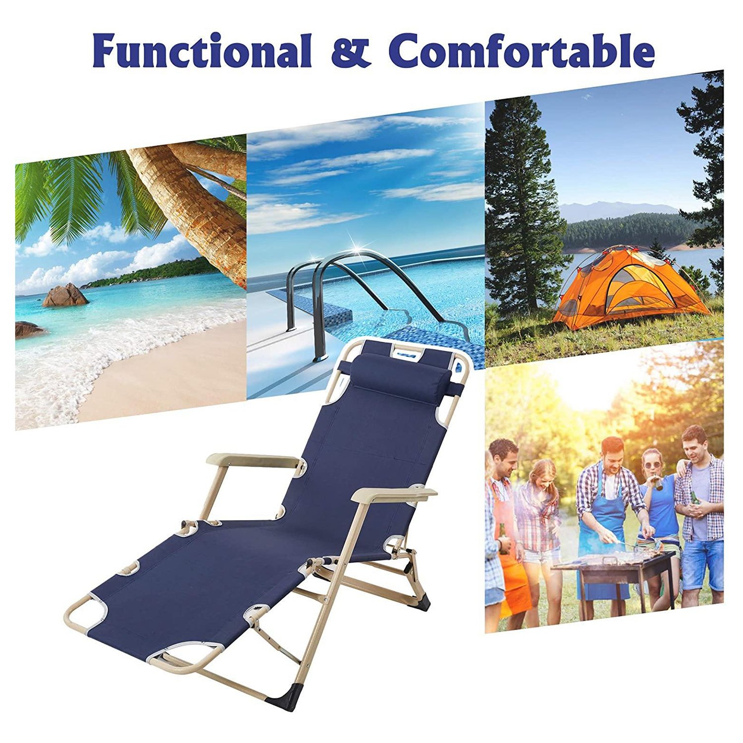 Portable: With its portable feature, the foldable recliner is suitable for various situations, such as beach, poolside, camping, picnic, and so on.
