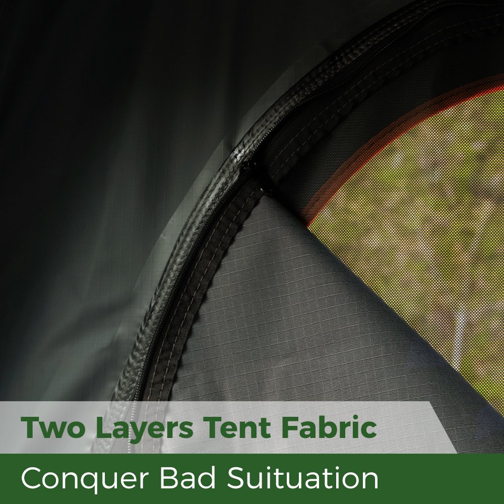 2.2. With the help of flame retardent fabric materials, and CPAI-84 cerficated. Can be safer and more comfortable while camping. 100% waterproof, breathable, UV-Resistant and non-perishable. All Windows are covered with quality insect-proof netting.