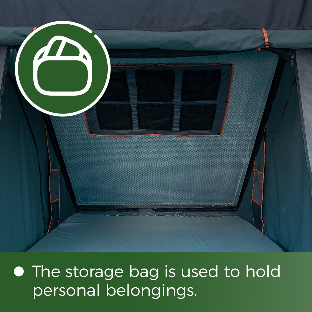 5.5. Tents include ceilling storage net and side wall storage net for stowing keys, wallets, headlamps, clothing, or anythign else you need to quickly stash inside the tent.