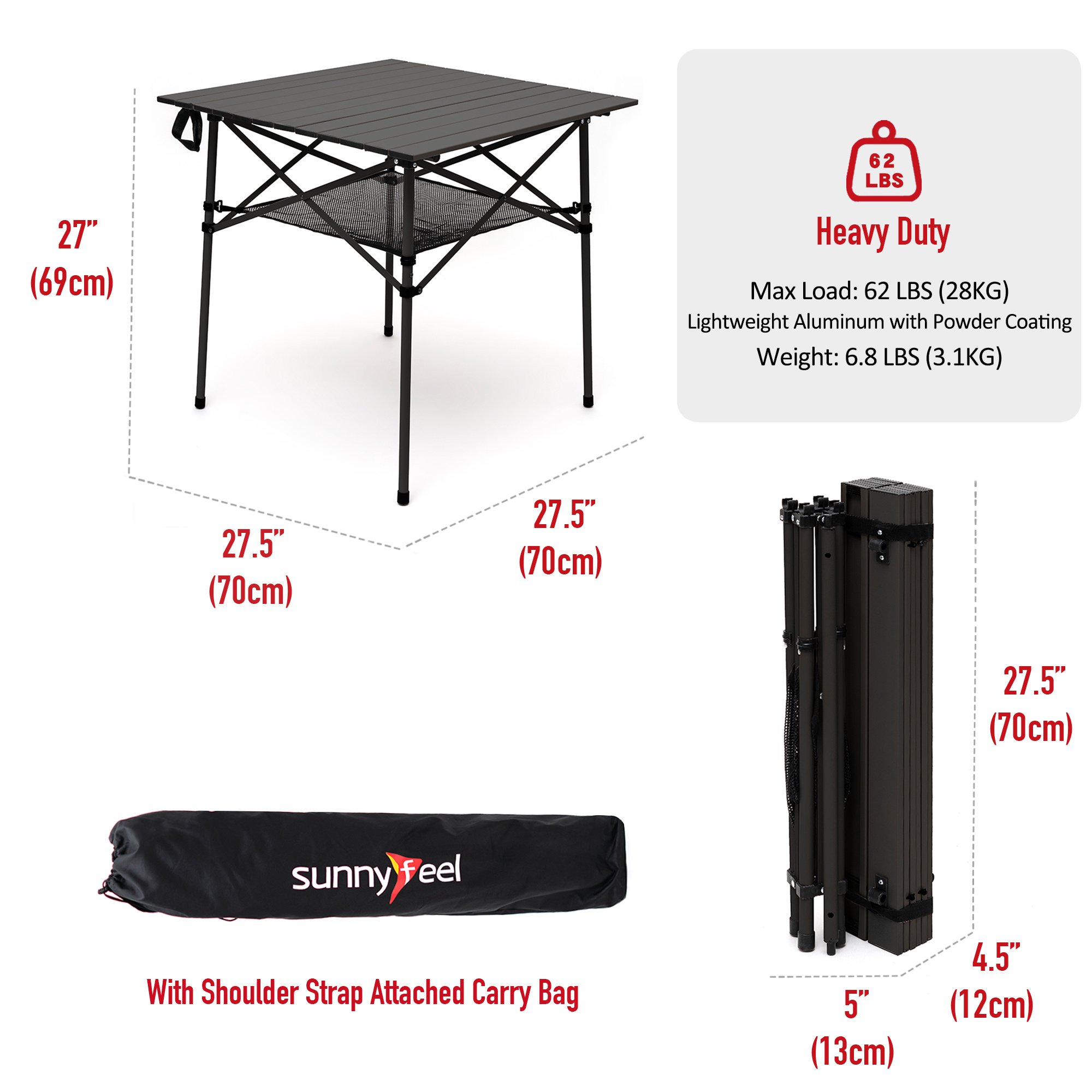 Home > SUNNYFEEL Outdoor Folding Table | Lightweight Compact Aluminum Camping Table, Roll Up Top 4 People Portable Camp Square Tables with Carry Bag for Picn