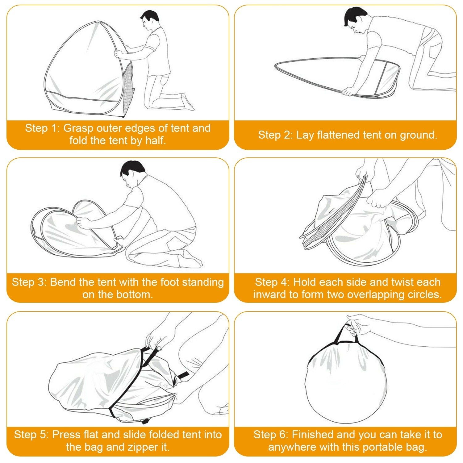 *Instant Setup & Easy To Store & Carry*:No tool is needed; just pop up to open and set up it. Coming with 6 ground nails to helpfully fix the tent. Besides; it also comes with a round carry bag to organize and carry the folded tent.