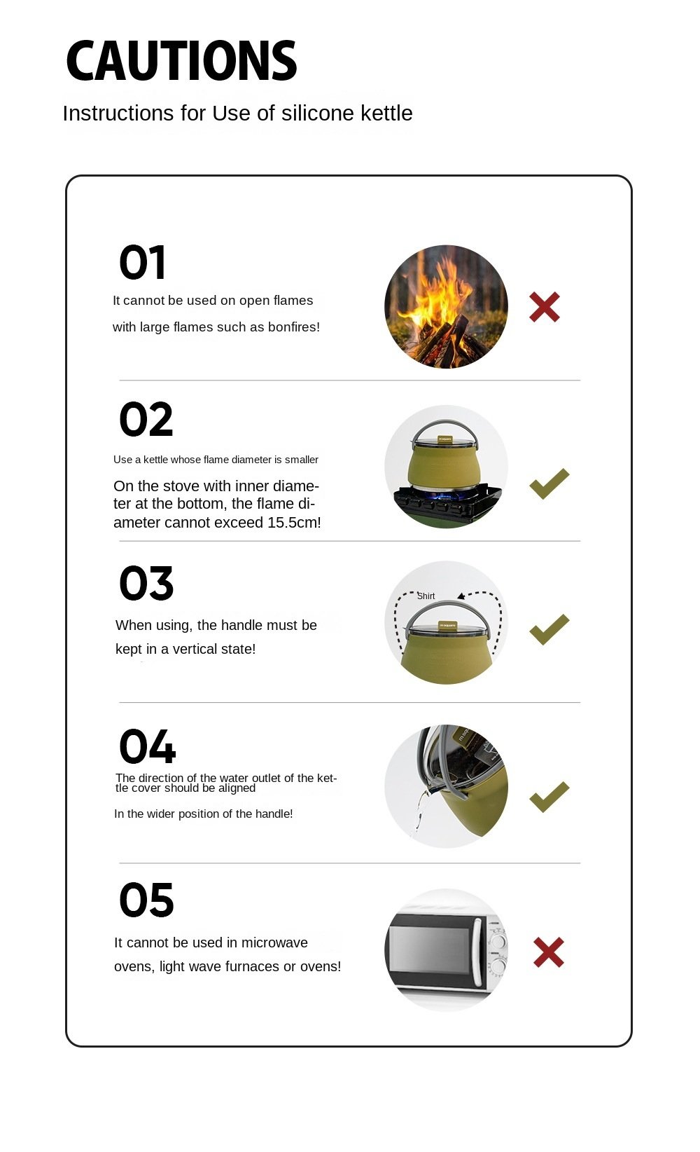 Silicone folding kettle portable wild camping outdoor open fire coffee tea cassette cooker cookware