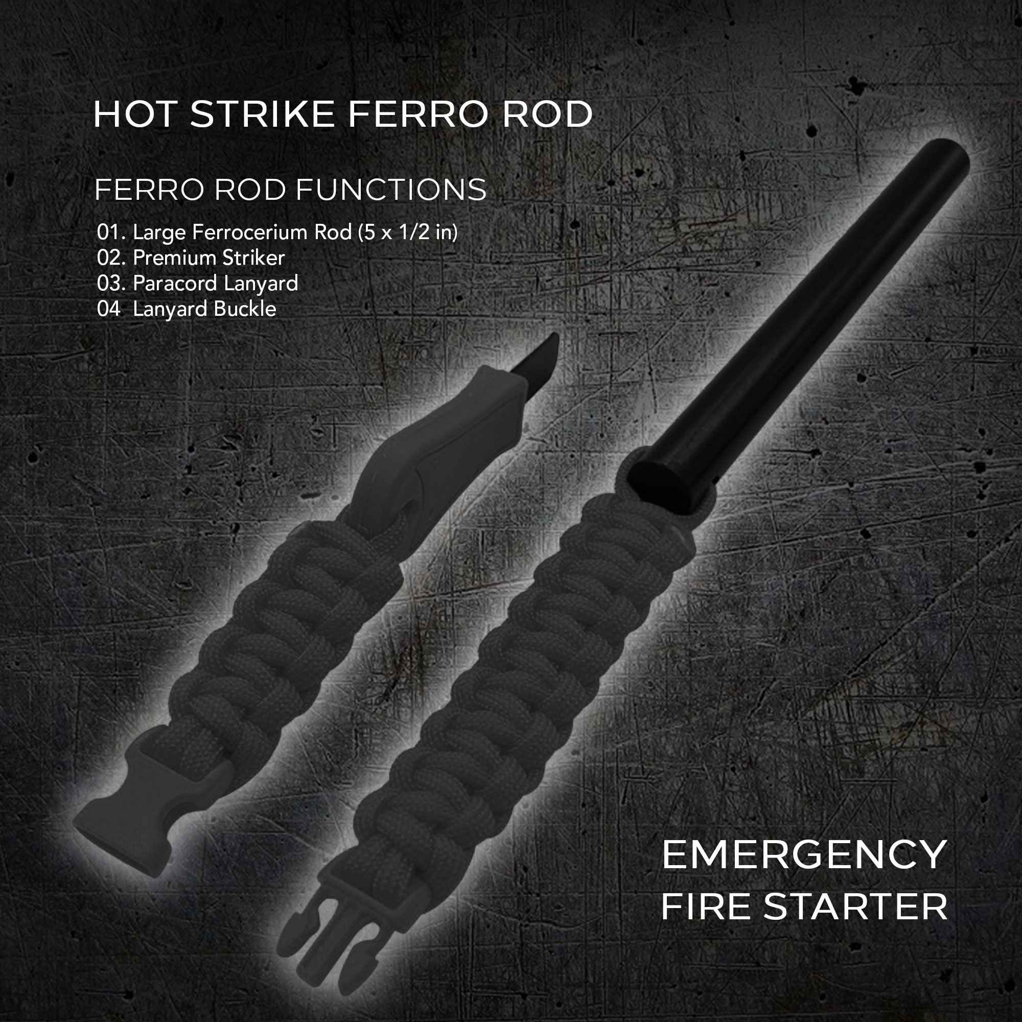 Hot Strike Ferro Rod Fire Starter | Emergency Ferrocerium Tool with Premium Striker and Lanyard with Buckle | Large Flint & Steel Survival Kit (5 x 1/