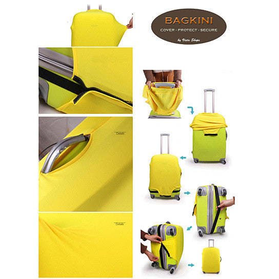 Look travel savvy with Bagkini; a bikini for the bag.. Make your bags look attractive and functional too as the Bagkinis come in beautiful colors and are secure enough to know that the safety of your precious cargo won't get compromised during transit..! Most importantly; no need to play guessing games at the airport where thousands of bags are rolling on the conveyor belt and save yourself from the embrassment and frustration of picking up wrong bags only to know it's not yours !! Recognize your bags with Bagkini in an instant as soon as they come and save time ; money and energy while you travel.. Each bag cover slips on the bag easily; won't rip or stain and they are machine washable as well..