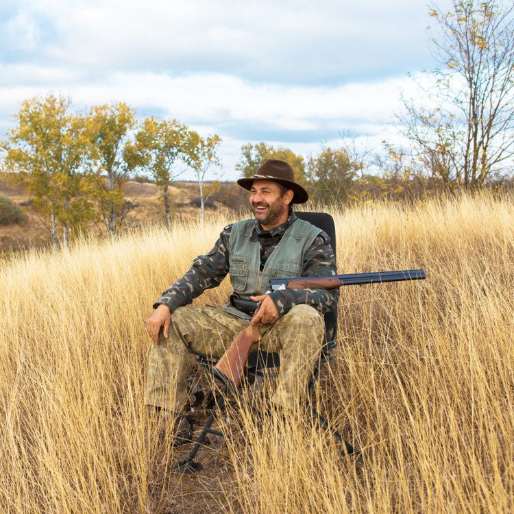 ● All-terrain Duck Foot Pads: Our 360 degree rotation hunting chair is equipped with 4 large 4" duck foot pads to provide great traction on muddy ground to avoid sinking. Besides, the duck foot pads is rotatable to keep good balance on all kinds of uneven grounds, such as mountains, gravel roads, sands, grasslands, etc.