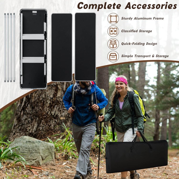 ● Multiple Suitable Occasions: With high functionality and portable design, this aluminum folding table is perfect for different occasions. You can use it for barbecue, camping, picnic and so on. Whether in the backyard, seaside, garden or any other outdoor place, it will always satisfy your multiple demands.