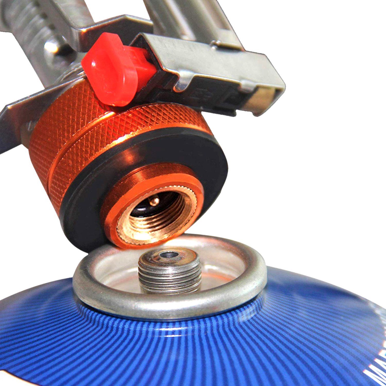 **STRONG FUEL CANISTER COMPATIBILITY*:Coming with a well-sealed thread brass canister connector to connect any 7/16 thread single butane/butane-propane mixed fuel canisters(EN 417).