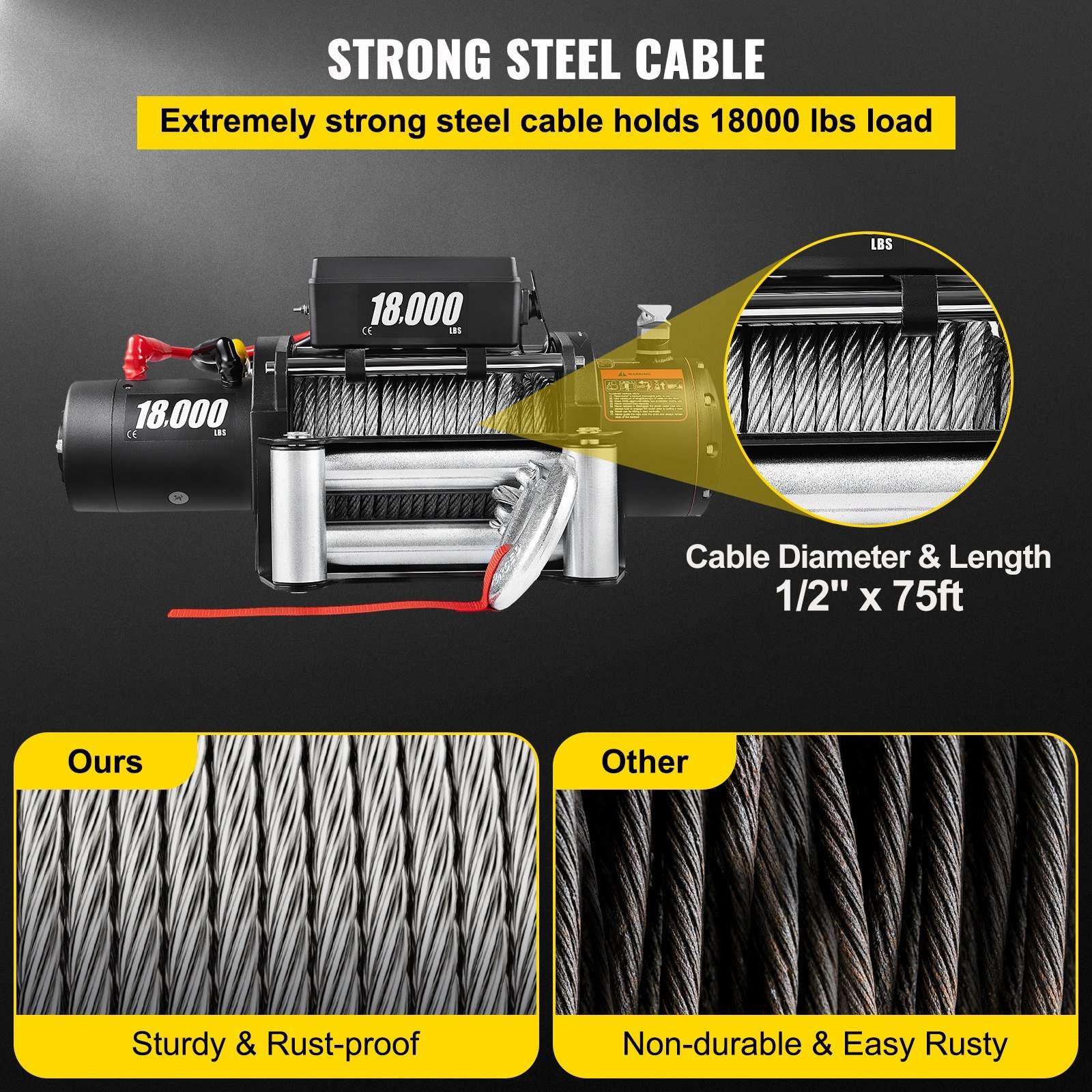 Upgraded Electric Truck Winch 18000Ibs with Durable 75ft Cable Steel