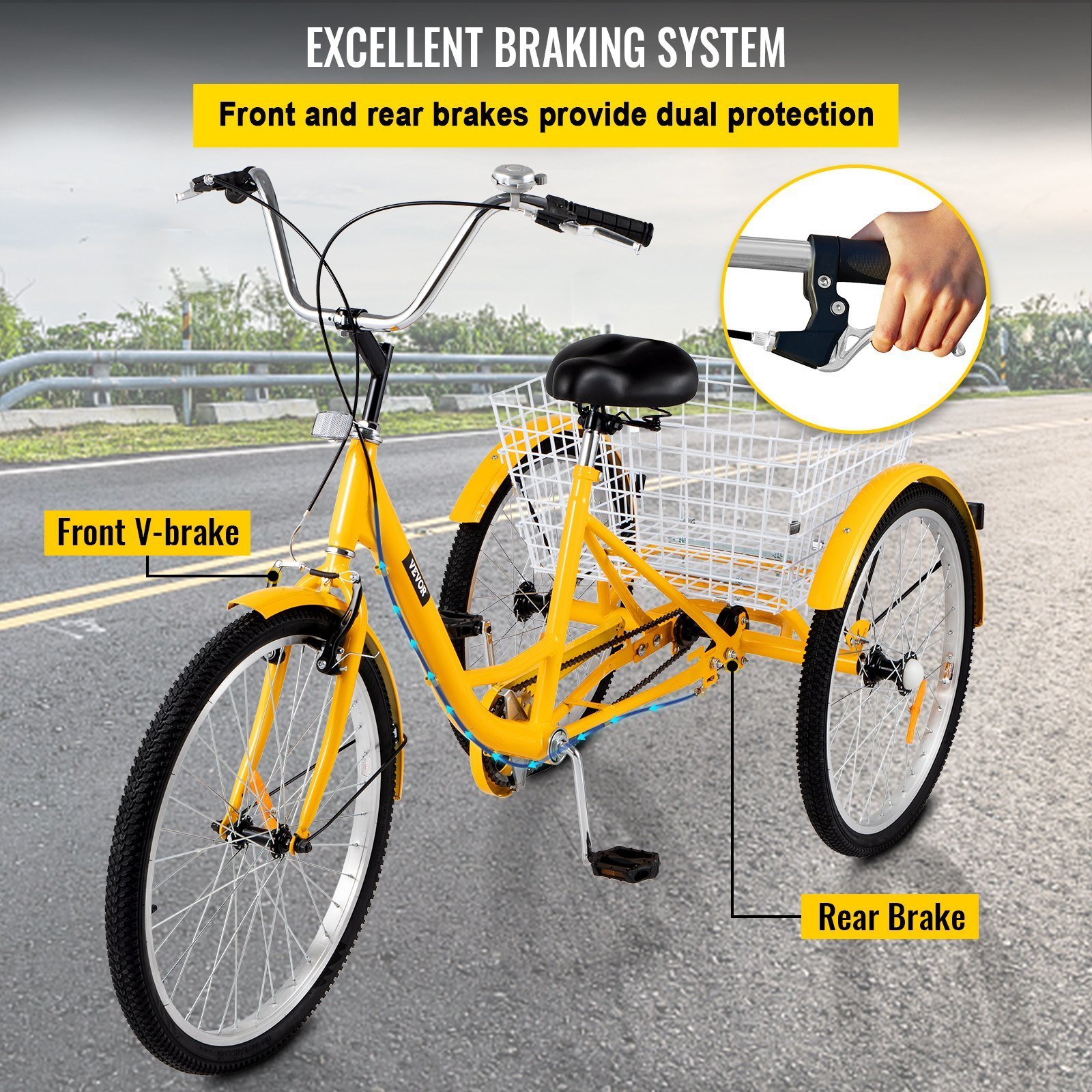 Home > VEVOR Yellow Adult Tricycle 24'' 1-Speed 3 Wheel Bikes, Foldable Adult Tricycle 3 Wheel Bike Trike for Adults, Cruise Bike 24 Inch Seat Adjustable Tri
