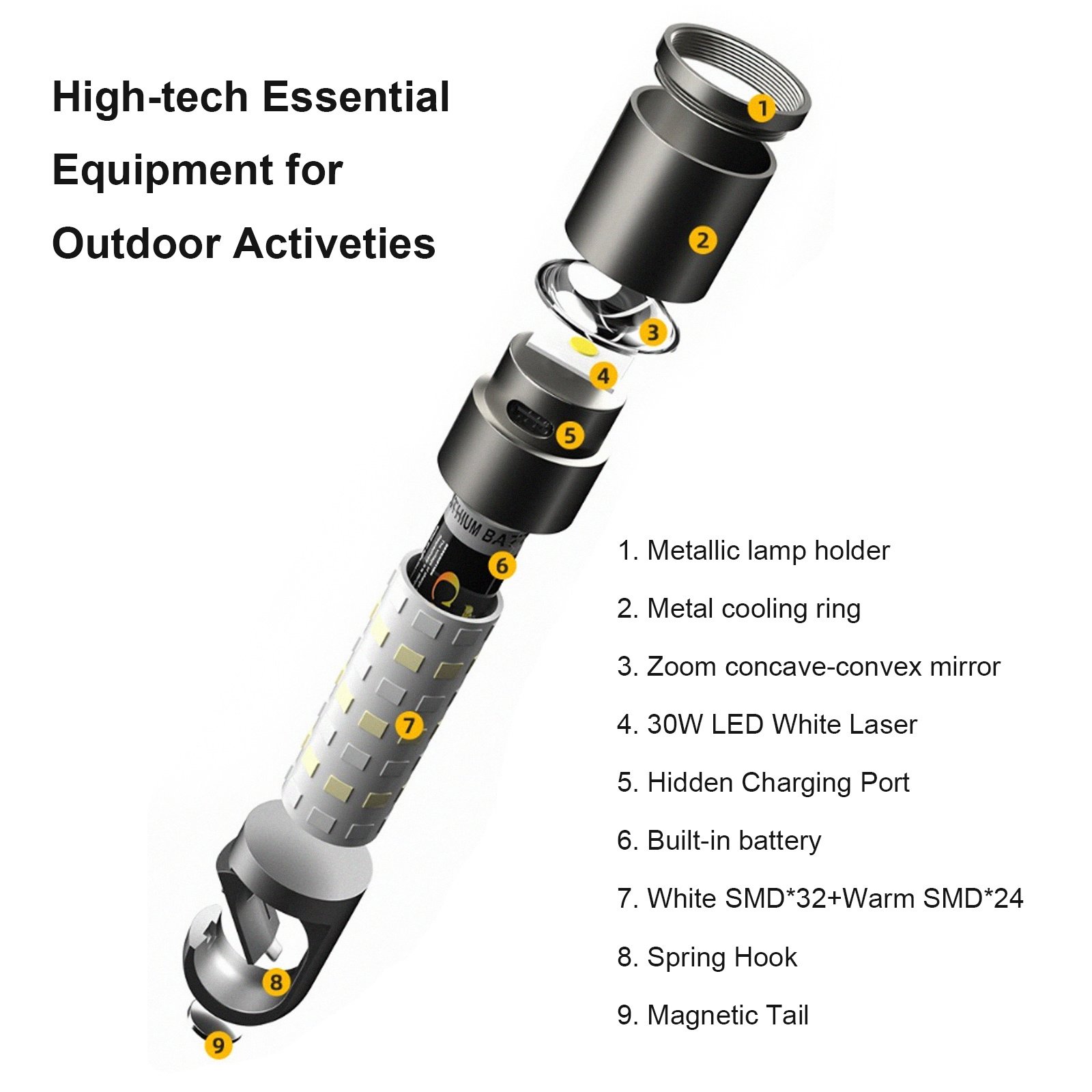 • 【Innovative 2-in-1 Design】This versatile luminaire seamlessly transforms from a portable flashlight into a powerful camping lantern. At just 6 inches tall and weighing only 0.4LB, it's the perfect portable lighting companion for all your outdoor adventures.